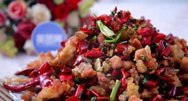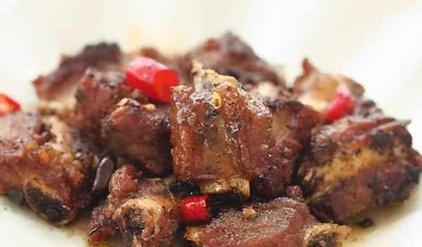 3.鍋留底油,放入蔥花、薑片和幹辣椒爆香,放入炸好的排骨翻炒,放入少量鹽,糖翻炒均勻,出鍋前撒入椒鹽即可。