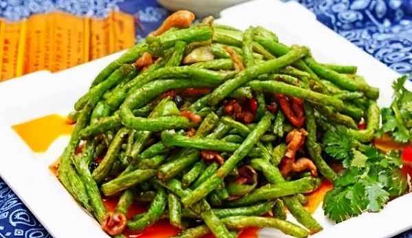 材料:四季豆、豬肉餡、生抽、料酒、幹辣椒、花椒、蒜、薑、食鹽、白糖、雞粉、植物油。