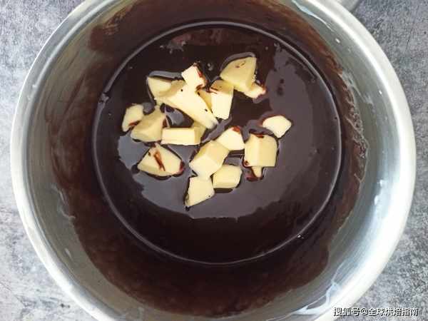 ▶step013:熬至濃稠後離火轉換容器,貼面封保鮮膜,冷藏30分鐘。