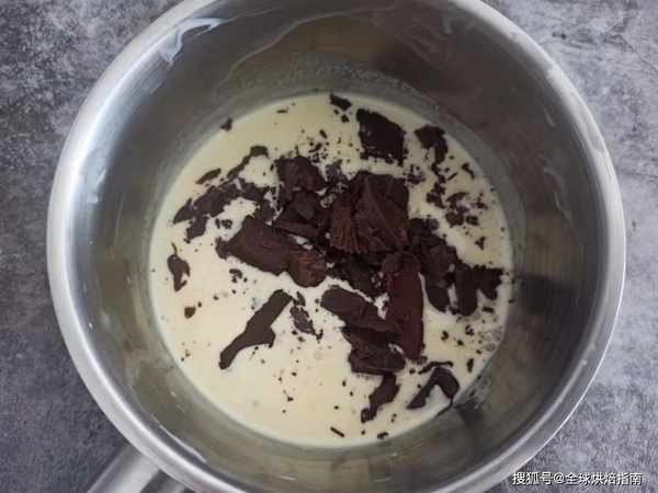 ▶step012:煮沸的忌廉分次倒入蛋黃糊中,邊倒邊攪,再回鍋熬至濃稠。