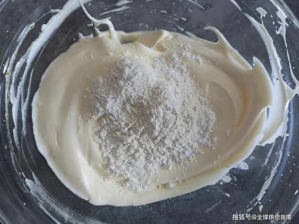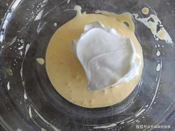 ▶step04:打好的蛋白霜分次加入蛋黃糊中翻拌均勻。