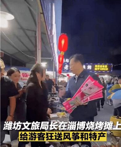 我們看到,濰坊文旅局副局長帶著7個縣的文旅局長跑到淄博燒烤攤推銷濰坊特產(淄博到濰坊隻需要半小時高鐵車程);