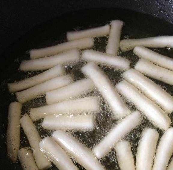 這樣的江米條吃起來特別的酥脆,大人小孩都喜歡吃,而且逢年過節外婆都會做上一大盆,可還是不夠吃。不過這種油炸甜食吃多瞭就會特別的上火,所以大傢還是少吃為好。