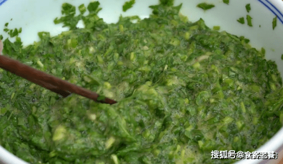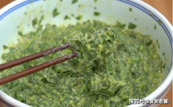 然後分次加入適量的面粉,每加一次都要充分的攪勻,面粉主要是起到粘合的作用,最後攪拌成粘稠的菜糊就可以。