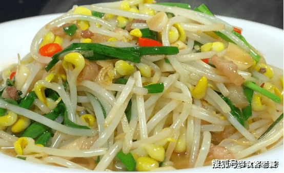 首先,準備一些新鮮的豆芽,把壞的挑選出來。處理幹凈以後,加入一勺食用鹽,倒滿清水,把豆芽清洗一下。豆芽清洗幹凈以後,控水撈出來。