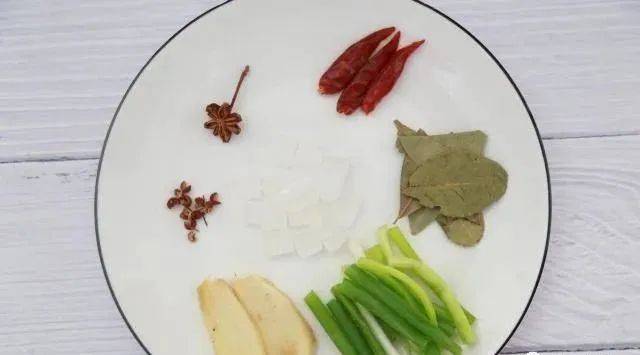 2、薑切片,蔥切段,其他的配料洗凈備用;