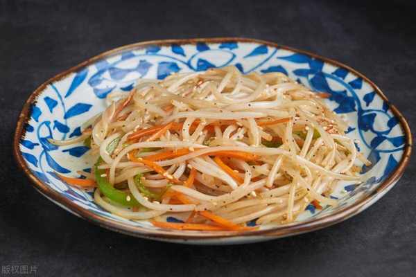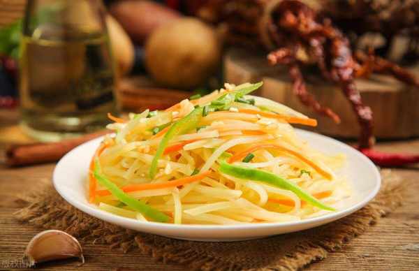炒土豆絲時,若先把切好的土豆絲在清水中洗數次,直至變成白色時撈出下鍋,炒至變色後放醋和水、鹽,翻炒幾下出鍋,這樣炒出的土豆絲絲絲分開,清爽脆嫩。