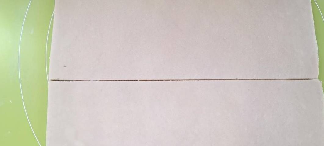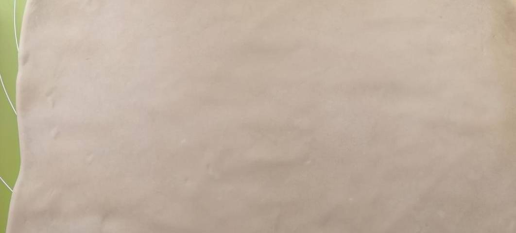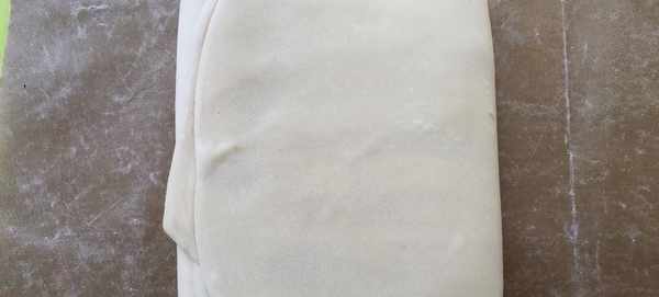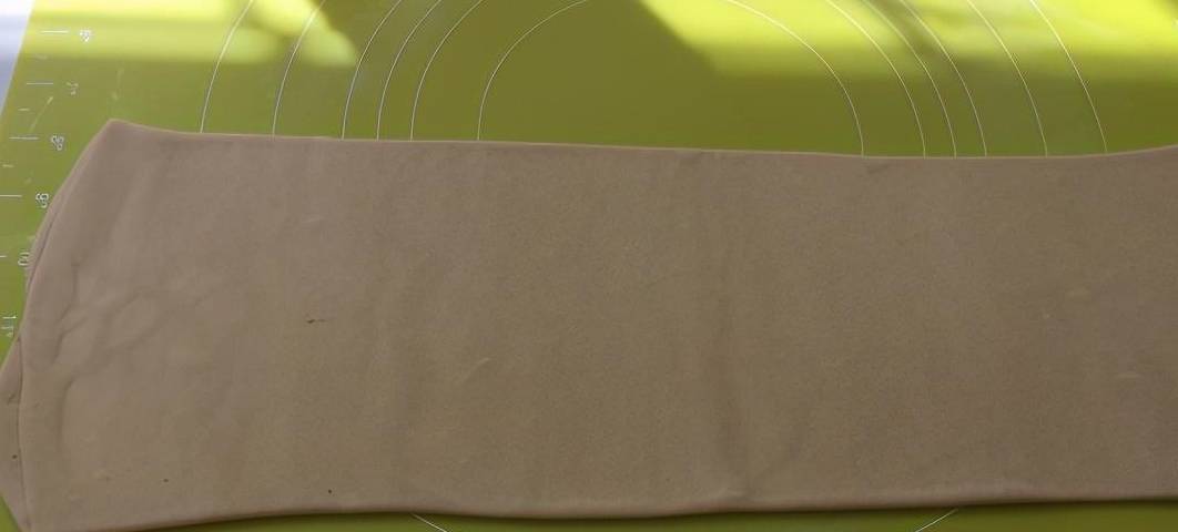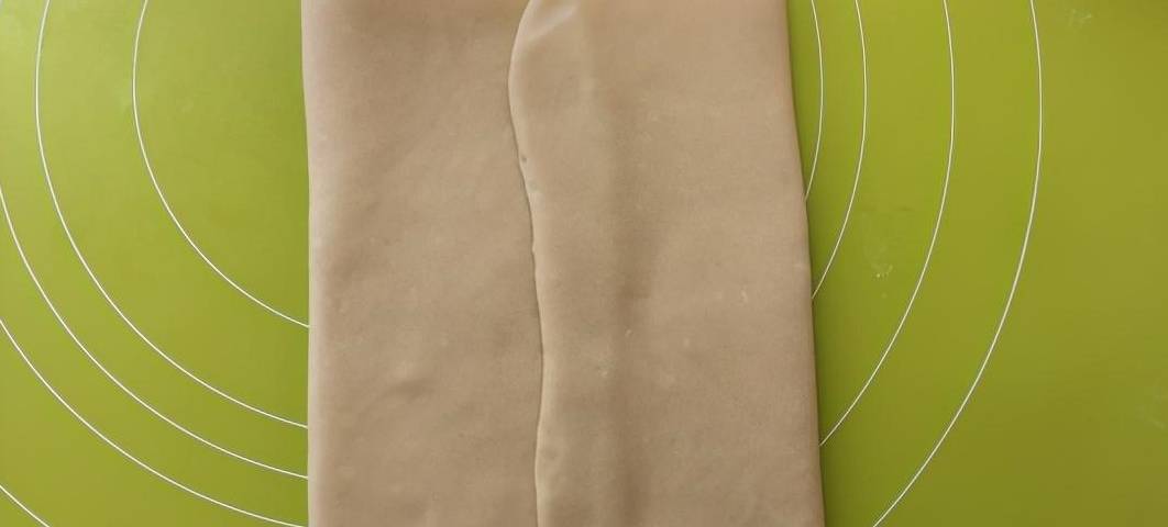 13.折好的面片再次搟成長條,長度是之前的三分之二