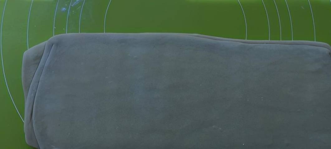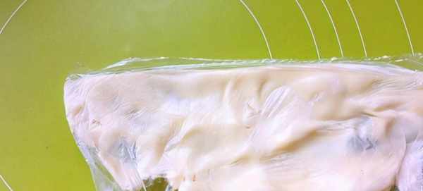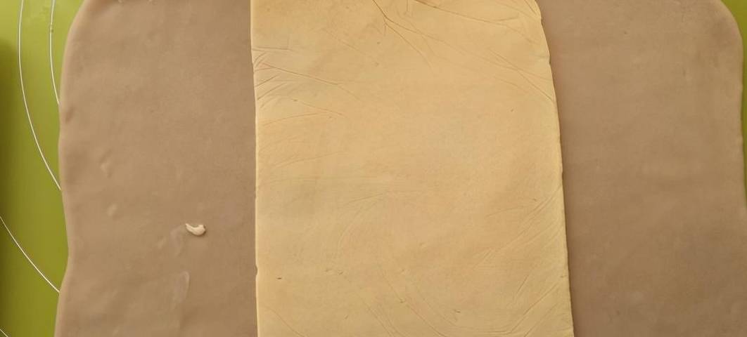10.面片室溫回下溫,變軟後,將兩側面片對折,包裹上黃油,收口處捏緊