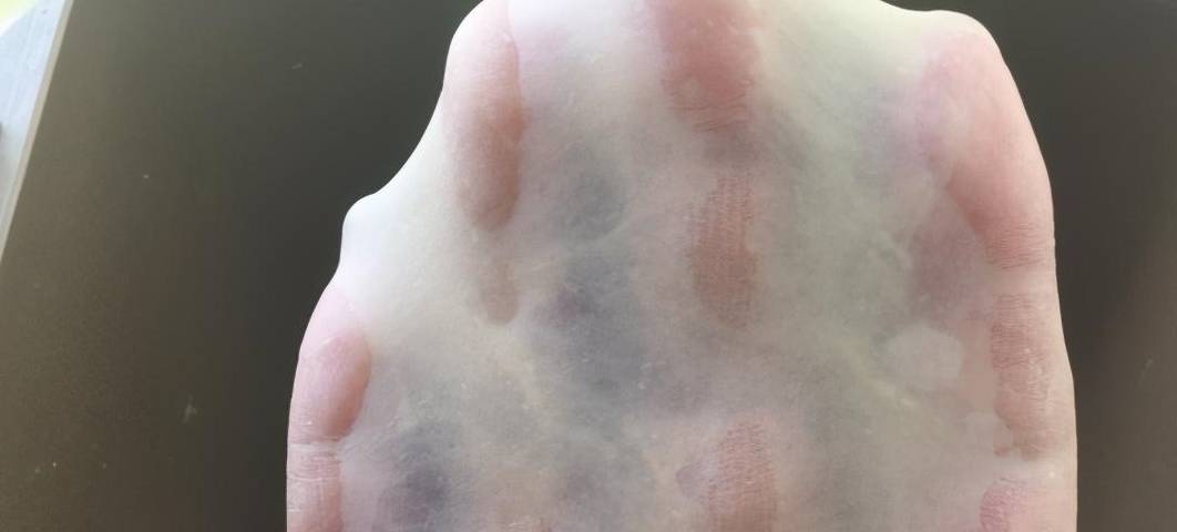 4.揉好的面團切下一小塊,可以撐出手套膜即可
