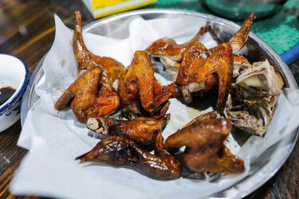 石岐乳鴿其實是廣東中山特產,這傢店是佛山吃鴿專門店。乳鴿一般養個20天左右就可以吃瞭,體大肉嫩、胸肉肥厚。兩種吃法,一炸,二鹽焗。