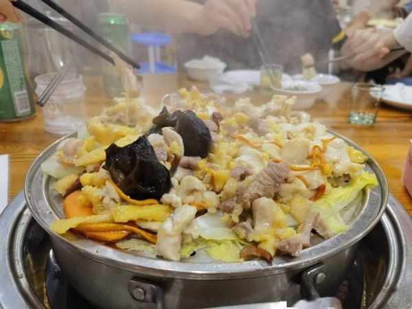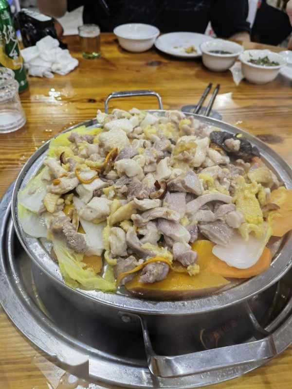 在杭州吃過一次桑拿雞就念念不忘,我問這傢店老板,一隻雞幾斤時,老板反問我你們多少人。當得知我們一行6人時,很開心就說,你們剛好點一隻雞夠啦,有10斤。說罷就進廚房去瞭,我們在外面等著聽到後廚傳來一陣雞叫,好一個“活雞現殺”!