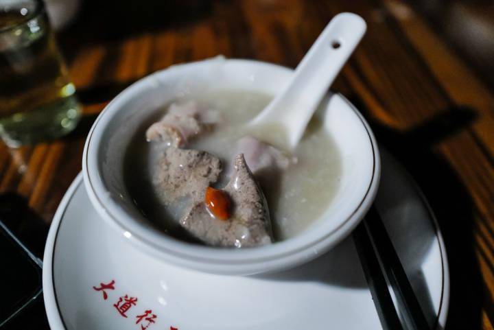 招牌的豬雜粥,豬肝、粉腸、豬心……加上綿滑招牌粥底生滾出一煲非常接地氣的廣式豬雜粥。