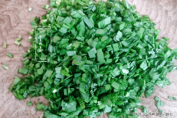第一步,摘洗韭菜。去菜園子裡,割一把韭菜,再把韭菜的黃葉和根部摘去,放入清水下沖洗幹凈,切成碎末。