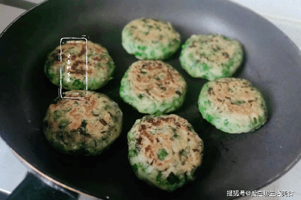 第四步,煎至。全部做好後,開中火開始煎制,一面煎至微黃後,翻面煎另一面。