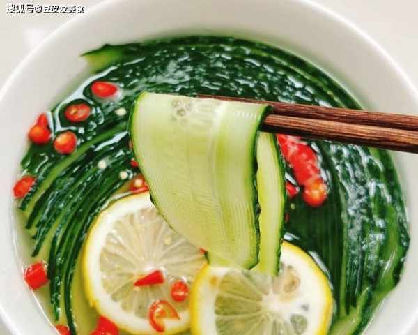材料:黃瓜2根,雪碧1瓶,小米辣適量,白醋3勺,白砂糖1勺,鹽適量,檸檬2片。