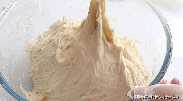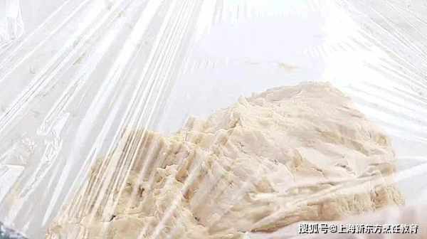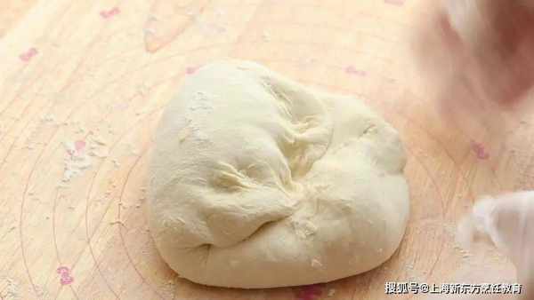 取出面團,四邊疊起,可撒少量手粉。