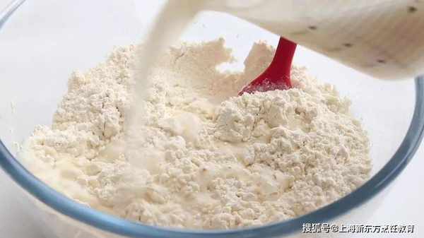 酵母加溫水攪勻,面粉中加入鹽,倒入酵母水,攪拌至看不見幹粉狀態即可。