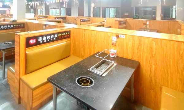 安氏延邊烤肉的寶海公園店,有40多張桌子,還有10多個包房,檔次與規模,怕是昆明最大的瞭。他們傢的烤桌很講究,純不銹鋼的桌子,油煙從桌子下面抽走不會吃一身的燒烤味道,十分幹凈清爽。