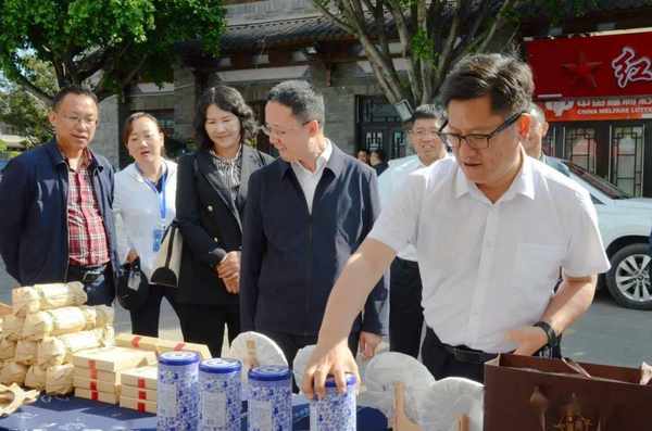 發佈會前,陳真永帶隊參觀瞭三月街南國城(密灣)分會場。在非遺特色集市和十二縣市特色產品展銷區,陳真永詳細詢問農特產品、非遺產品展銷和推介宣傳情況,對產品優化提出建議,並勉勵參展縣市和企業繼續努力,抓住三月街黃金期,最大限度做好產品展示和推介,把產業做大、產品做優、企業做強。他強調,要加快農文旅融合,做精做優“土特產”文章,充分挖掘特色資源,加強科技創新,延伸產業鏈,實現帶農增收。