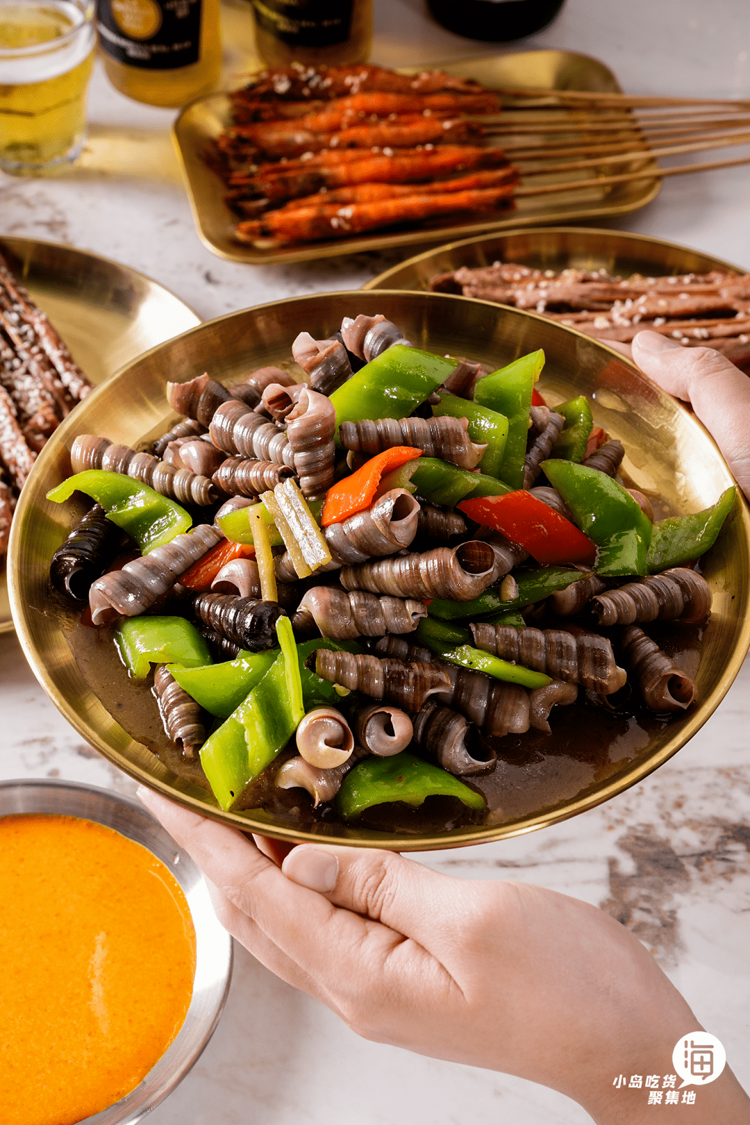 蘸一蘸底部的醬汁入口,咸香濃鬱,很好地保留住釘螺本身鮮美的味道。一口一個,配點小酒~
