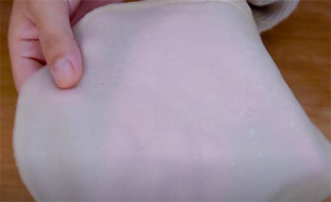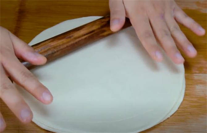 8.咱們這個做好的單餅特別的薄,這個平時的吃法有很多種,我們可以把它切成絲調成涼菜,或者炒菜的時候用一些也很好的,最好的做法就是卷上我們的炒菜直接吃,是最好吃的,口感也是最棒的。