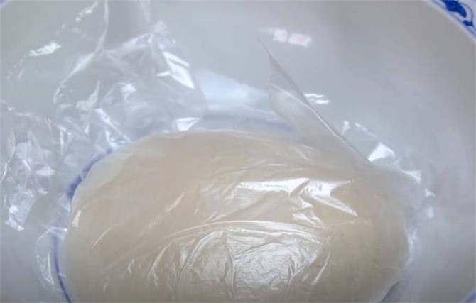 1.準備300g的面粉,3g的食鹽,然後我們用180ml的開水燙面,下手揉成面團,面團揉勻揉光就行瞭,封上保鮮膜餳上半個小時。