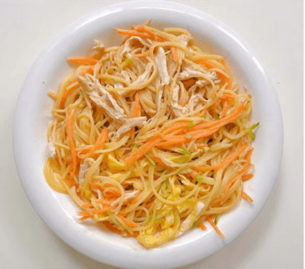 做法:雞肉放蔥薑煮熟撈出,撕成雞絲,面條提前煮熟撈出過涼水、雞蛋攤成雞蛋餅切絲,