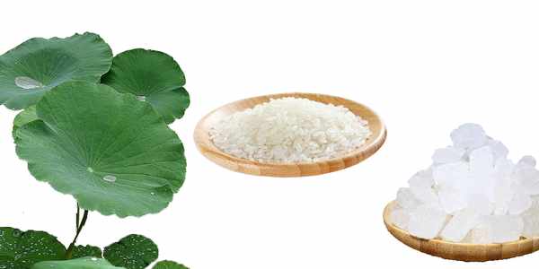 雨後的新鮮荷葉1張、沙米100克、冰糖適量