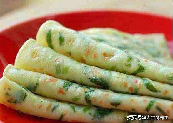 原料:面粉100克,香菜葉,雞蛋兩個,橄欖油一大勺,鹽,胡蘿卜,水