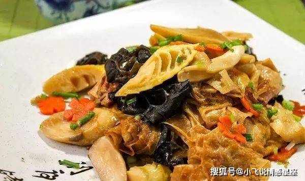 豆腐皮200克;竹筍80克;50克平菇;50克黑蘑菇(水菇);胡蘿卜30克。