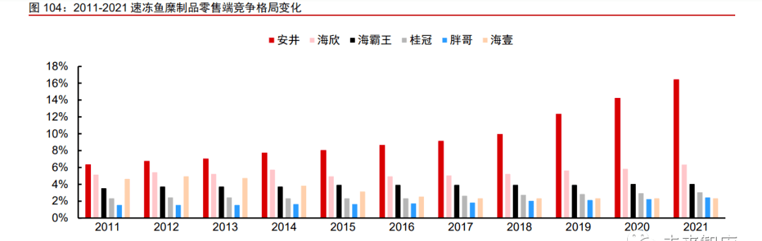 上遊進口依賴度高,龍頭以水產類企業為主,下遊便利店占據較高份額。