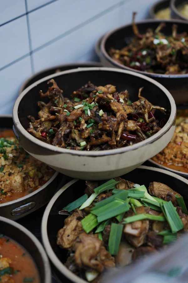 缽子菜分為清燉、混燉、侉燉三種,口味上則分為濃味和清淡。食材選擇上十分廣泛,幾乎所有食材都可入缽成為常德人的日常美味。花樣迭出的缽子菜菜單中,排名第一的總是谷鴨。谷鴨即農傢散養土鴨,在水塘稻田長大,谷鴨肉質緊實,頗有嚼頭,幹香突出,進缽之前,鴨子先與幹辣椒、薑、八角等香料煸炒後小火煨過,鮮、香、辣滲入其中。土雞也愛用老雞,加幹辣椒與青辣椒同煨,香中帶辣。