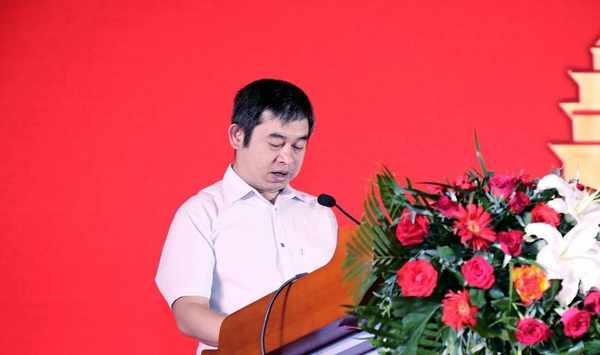 貴州釣魚臺國賓酒業有限公司總經理丁遠懷在開幕式上分享瞭他在延安遊學的感悟心得。