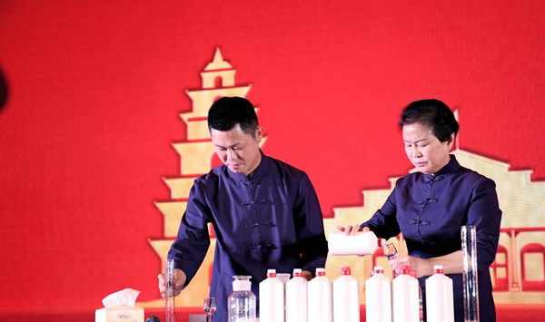 付宇豪、馮小寧、陳佐林、羅吉洪、李明金、胡永才等六位專傢還在現場為延安的消費者展示瞭以七個輪次基酒勾調優質醬香白酒的技藝。