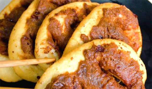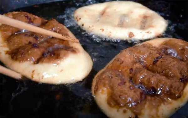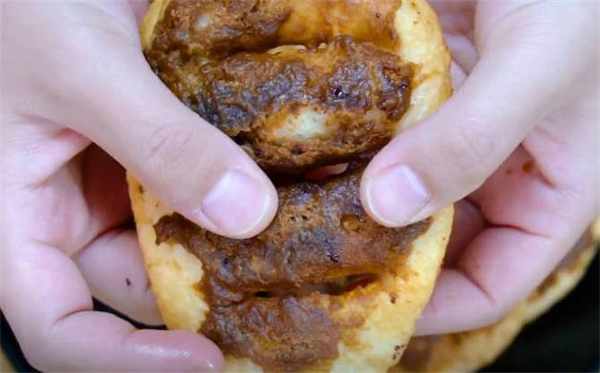 8.咱們這個糖油餅就做好瞭,看一下這個表面這一層紅糖,特別的酥。