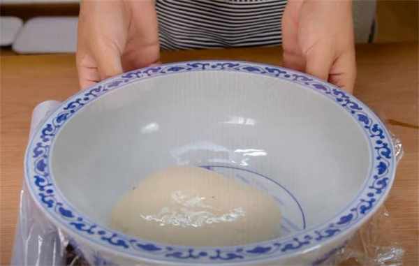3.咱們這個面也發好瞭,把面團稍微揉兩下,然後這樣揣著排氣。