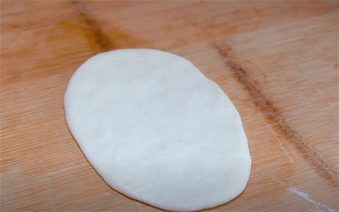5.用搟面杖搟開,整理成一個這樣稍微有一些橢圓的形狀就行瞭。