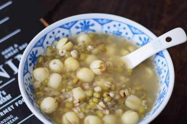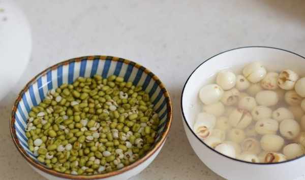 綠豆、薏米、蓮子的比例是:10、4、2,一般傢庭100克綠豆、40克薏米加上20克的蓮子一天的量足夠瞭!