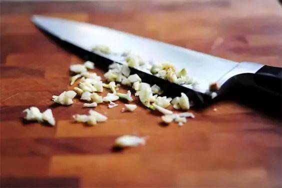 3、加蒜末、2茶匙米醋、2湯匙芝麻油和1/2茶匙辣椒油。