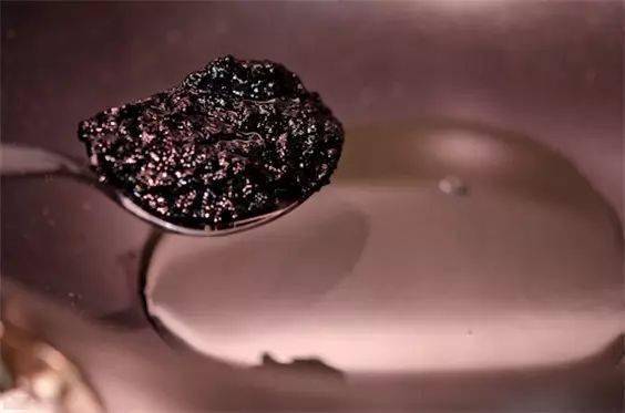 1、熱油鍋,加入黑豆醬和糖,攪拌3分鐘,盛到碗裡備用。