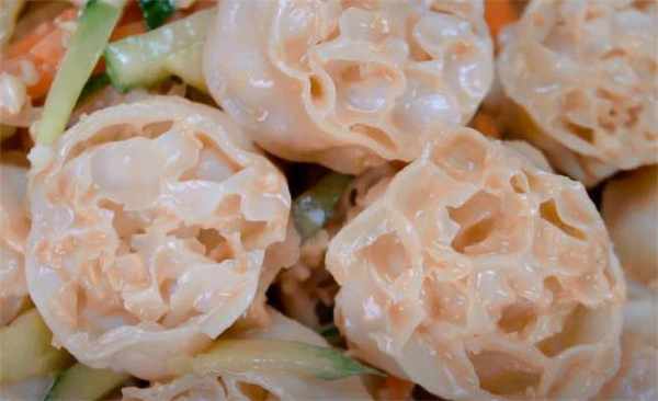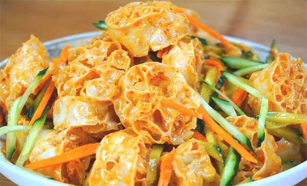 4.咱們這道涼拌面藕就做好瞭,它上面吸收瞭特別多的料汁,咱們這個面藕泡發瞭之後,它本身的這個氣孔就非常的多,所以說調料汁的時候,它就會輕而易舉的就能吸收特別多的料汁,比那個面筋都要好吃,吃起來的口感是松松軟軟的,還很筋道,大傢喜歡可以試一試。