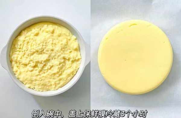 第二步:攪拌濃稠後倒入碗中,蓋上保鮮膜冷藏3個小時來定型。