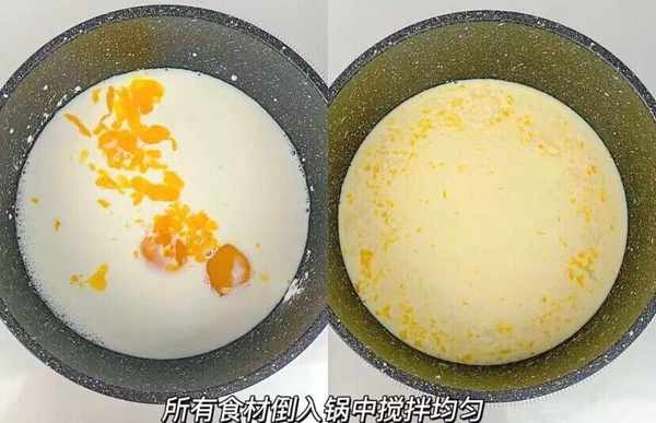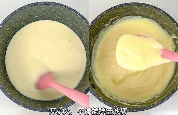 第一步:所有食材倒入鍋中攪拌均勻,開小火不停攪拌至濃稠(全程小火,大火會有糊味)。