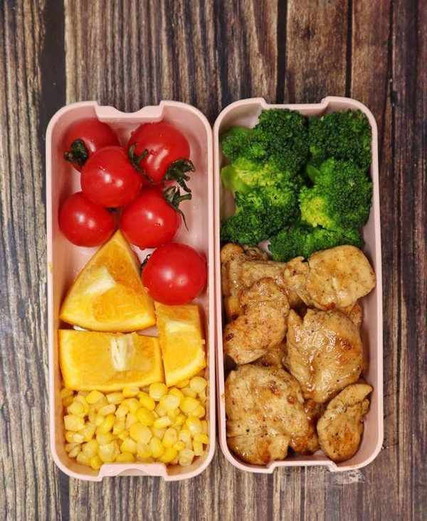 材料:孜然煎雞胸+(西蘭花+玉米+橙子+小番茄)