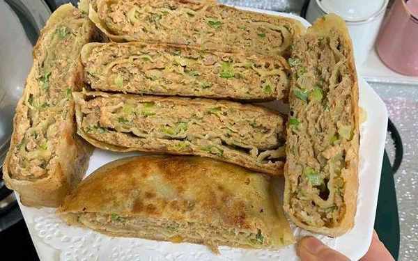 千層肉餅,記得上學那會經常吃,學校門口就有賣的,在北方,基本上北方人都愛吃面食,餡餅更可以當早餐,午飯,晚飯都可以,適合上班的人簡單方便。豬肉大蔥餡的千層餅,每一層餅都裹滿瞭厚厚的肉餡,皮薄餡足,外酥裡軟,咬一口滿嘴香,在傢做給孩子吃,好吃又衛生,趕緊做起來!