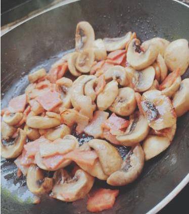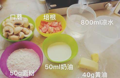 面粉炒開之後,趕快加水,分幾次加,不要加多瞭,邊攪拌邊加,直到鍋中黏稠就可以瞭。蘑菇清洗幹凈,切成丁,培根切成小片,玉米粒洗凈,全部放入鍋中,倒入一袋子牛奶,煮至蘑菇變熟,然後加上少量鹽,撒上一些黑胡椒粉,美味的奶油蘑菇湯就做好瞭。