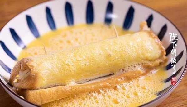 打2個雞蛋,將吐司卷裹上雞蛋液。