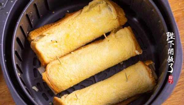 空氣炸鍋180度5分鐘,中途翻面再烤2分鐘就可以啦(烤的過程可以拿出來看下)。