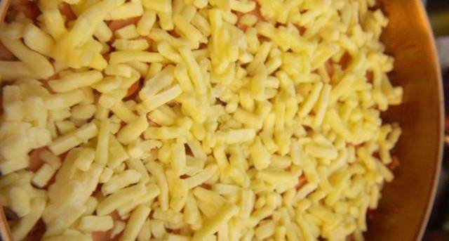 5.再把芝士碎均勻的鋪上去,蓋上蓋子燜煮至芝士融化即可